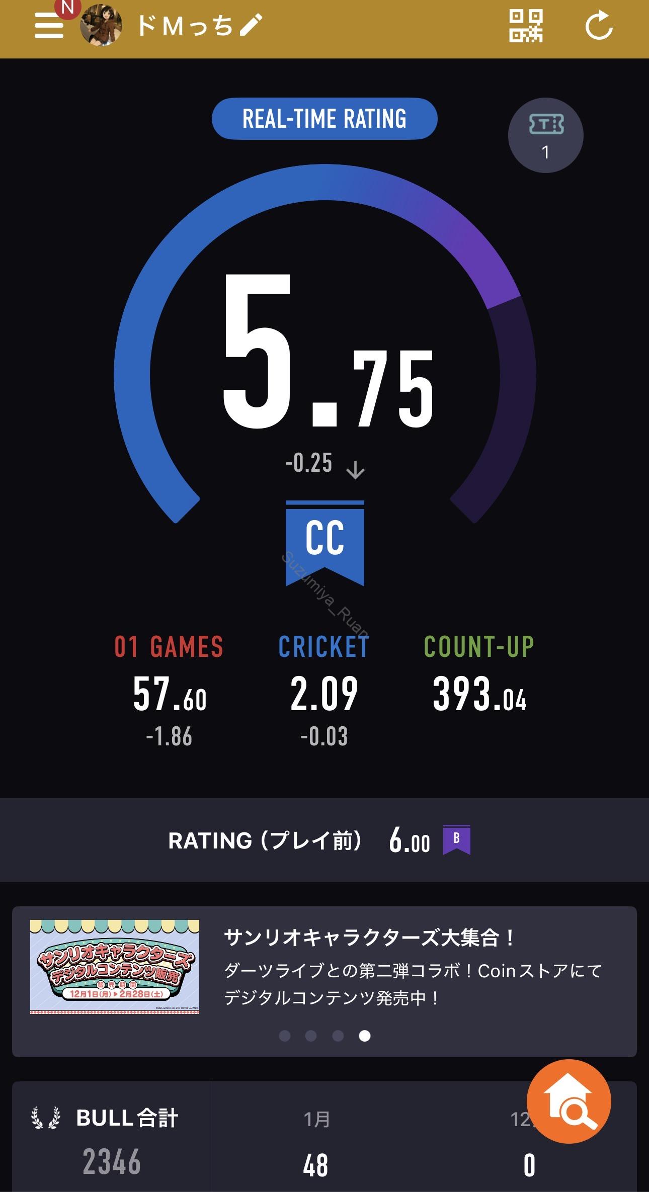 昨晩プロの友達と一緒にダーツ🎯してた! でも指が痛いからレーティングはガッツリと 下がっちゃっ…