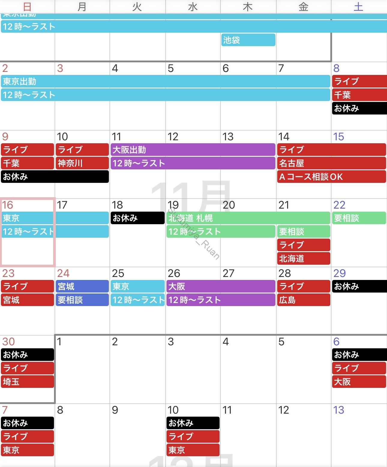 こんにちは〜!!! 10月〜11月のシフト更新したよ♪ めちゃくちゃ地方に移動するね....‼️ …