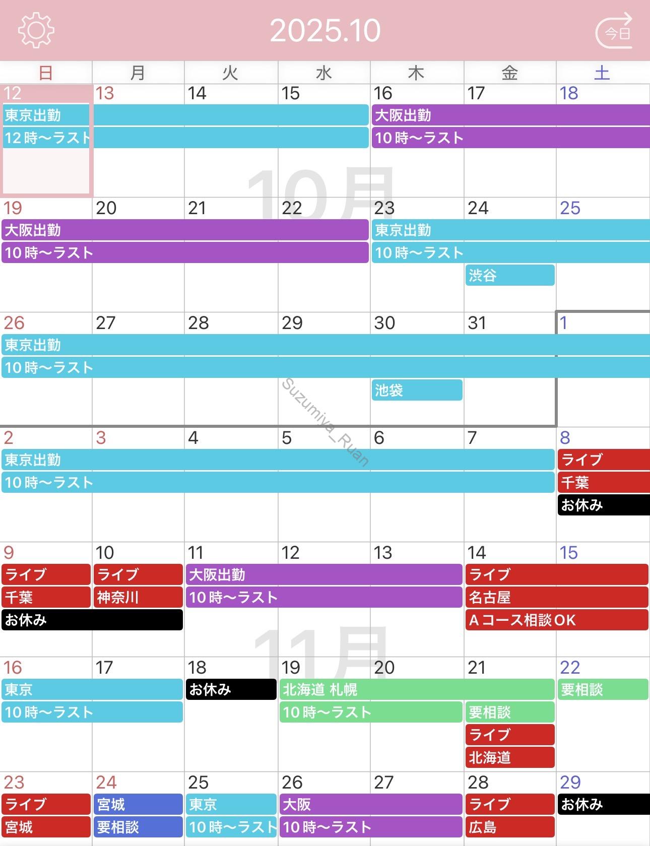 シフト更新したよー!!! 今月は東京と大阪が多いけど 来月は全国飛び回るよ〜!!! 車で移動するから大…
